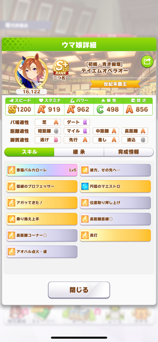 新オペラオー、スキルは強いけど長距離の先行がキツイ感じか