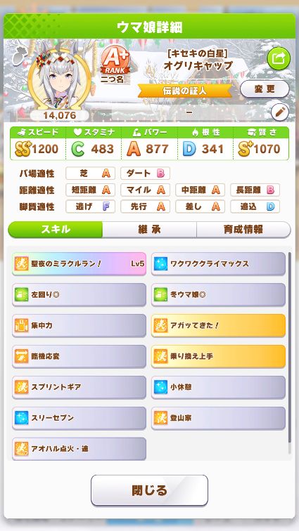 最終直線で小休憩をトリガーに固有が出るので悪くないと思ってるただ再度育成して登山家取れるかっていうと無理だろうなぁ