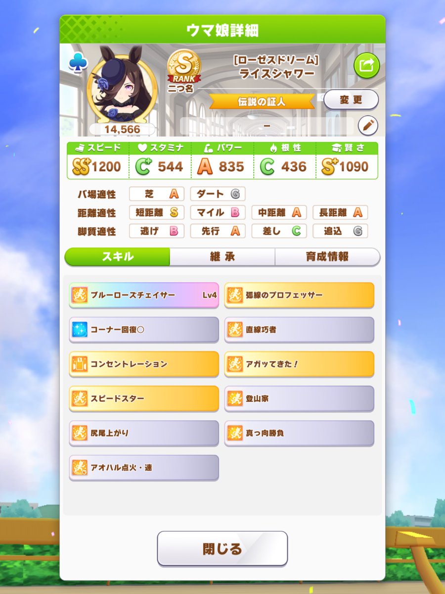 短距離ライスで魔改造はヤバくないか。。ライスちゃん短距離S、切れ者、ステいい感じからの春天で負けはつらい短距離ライス、春天越えられずあえなく育成失敗となりましたオレも短距離ライスするか~ってなってたけど春天越えれなくて終わった登山家強いらしいからライス魔改造して育成してるんだけど短距離仕様で育成したらどう頑張っても春天勝てなくないか??