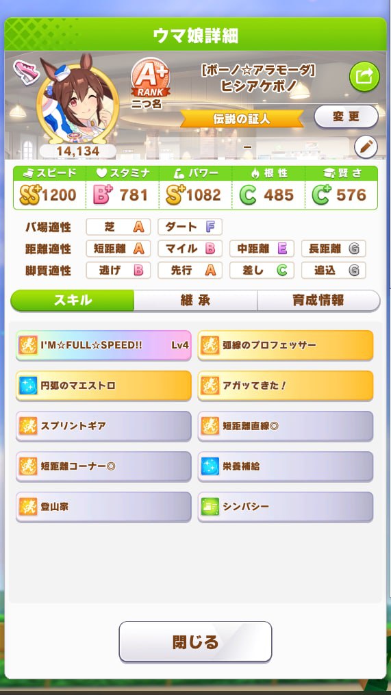 #ウマ娘 #ゲームウマ娘 pic.twitter.com/Fmy2gu7qPnヒシアケボノってスタミナ上げて意図的に終盤接続できるのか。