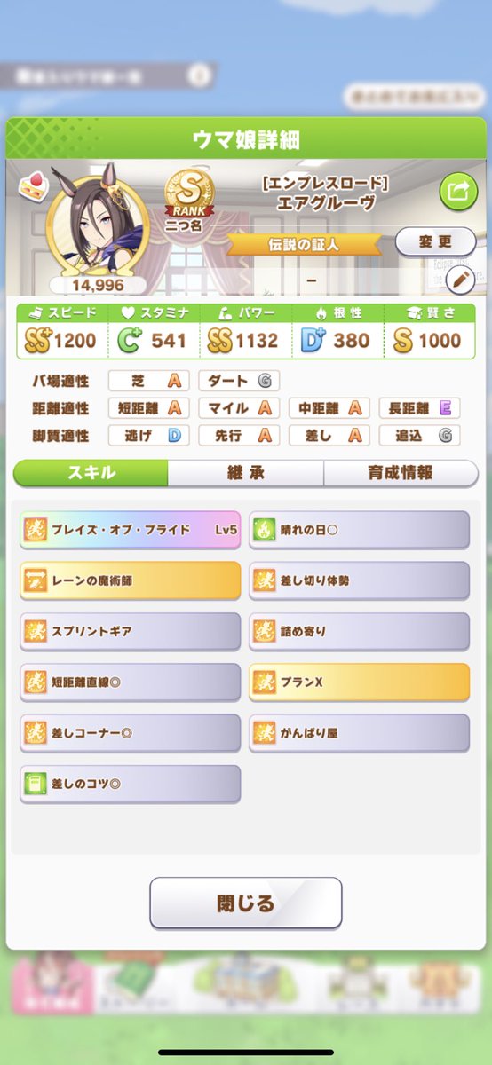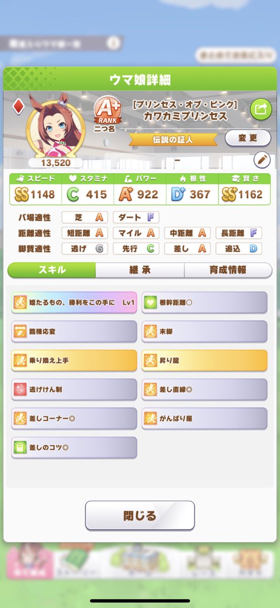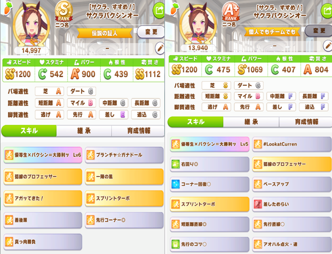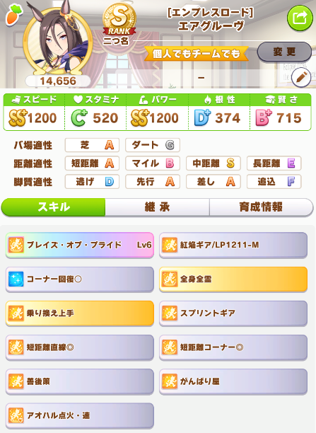 S、S+は沢山入ってくるが、言われてるような勝ち筋拾えるスキルをそこまで山盛りにしてる人少なかった