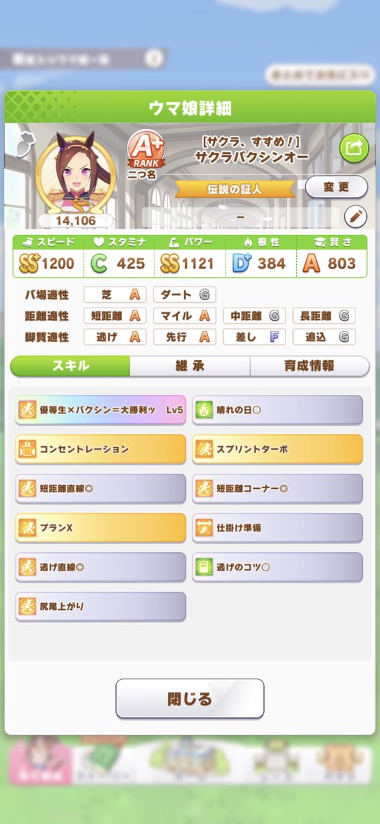 ここまで育成してきた体感は 5割ぐらい 一回短距離因子を引ける