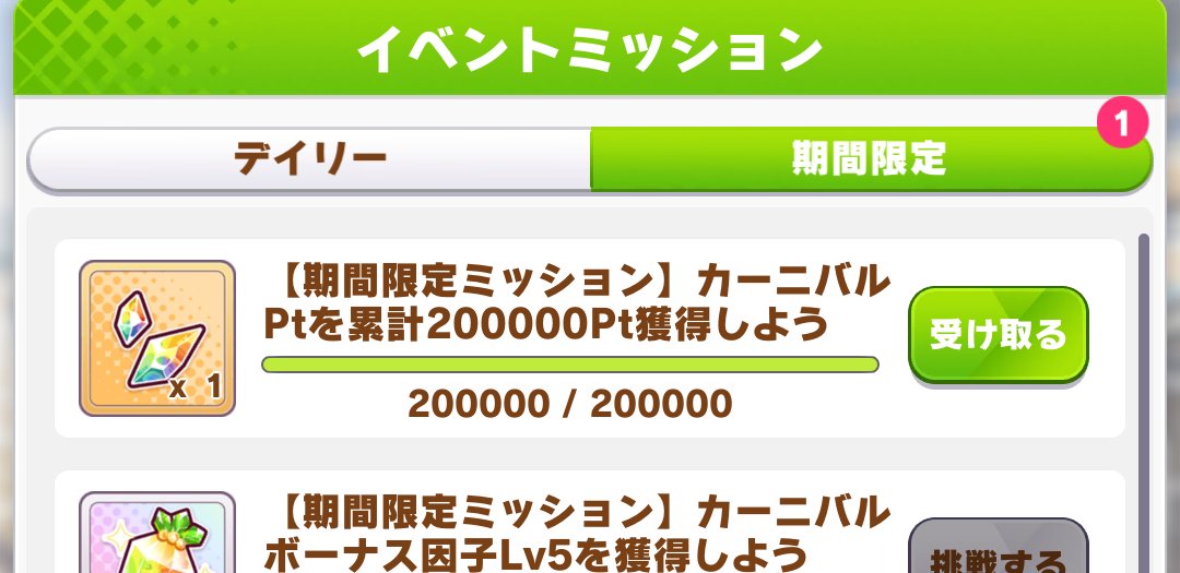 カーニバル因子レベル5をつくる面倒さえ乗り越えてしまえば楽にこなせるイベントという印象です。