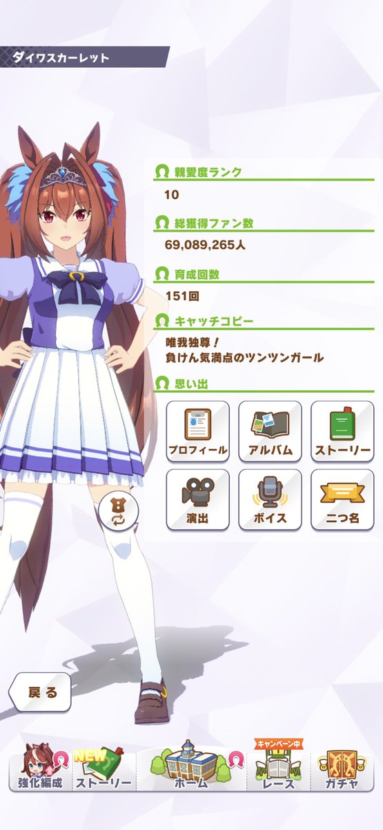 私はスカーレットちゃんですね。最近はそれほど育成してるというわけではないのですが一時期チャンミで常に出走させていましたからその影響ですね~