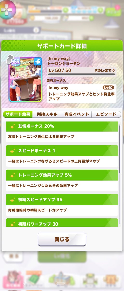スピ賢さでやるとパワー不足で悩まされる訳で、初期パワー30付きでトレ効果10%補正って強いはずさ。