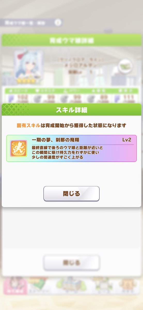 引きたかったけどデジたんが来たからアニバ前だし撤退してダート育成するね…名無しのトレーナーラモーヌお姉ちゃん名前は頻繁に出てくるし最後の秋天ではレース場で観戦もしてるけど姿はついぞ見せてくれなかったな名無しのトレーナー育成してるとライバルが…ライバルが多い!名無しのトレーナーキャラストが相次ぐ出走取り消しで限りある本格化の時期をそこそこ浪費してるってスタートなのが割とえぐいと思う名無しのトレーナードトウさんなんか本格化前なのにトウィンクルシリーズに殴り込んでいるんだぜ名無しのトレーナー史実も4歳の春デビューだからな…