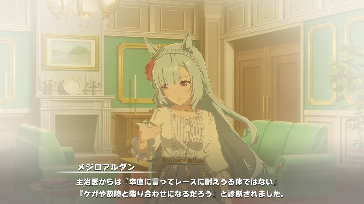 アルダンのシナリオに主治医さん出てくるのか。アニメのあの人を想定してるのか否かアニメにも出てたメジロ家の主治医、ラモーヌやアルダンも診ていたと思うとドラマがあるな。