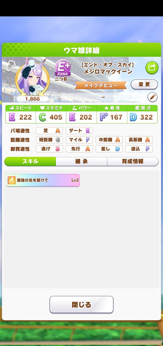 オグREのほうがめちゃめちゃ多いんだが152: 名無しのトレーナー 2022/02/12(土) 11:54:53.39 ID:WNoEFoO30ホープフルSはスピード400あれば逃げで安定だけど300くらいだと割と事故る