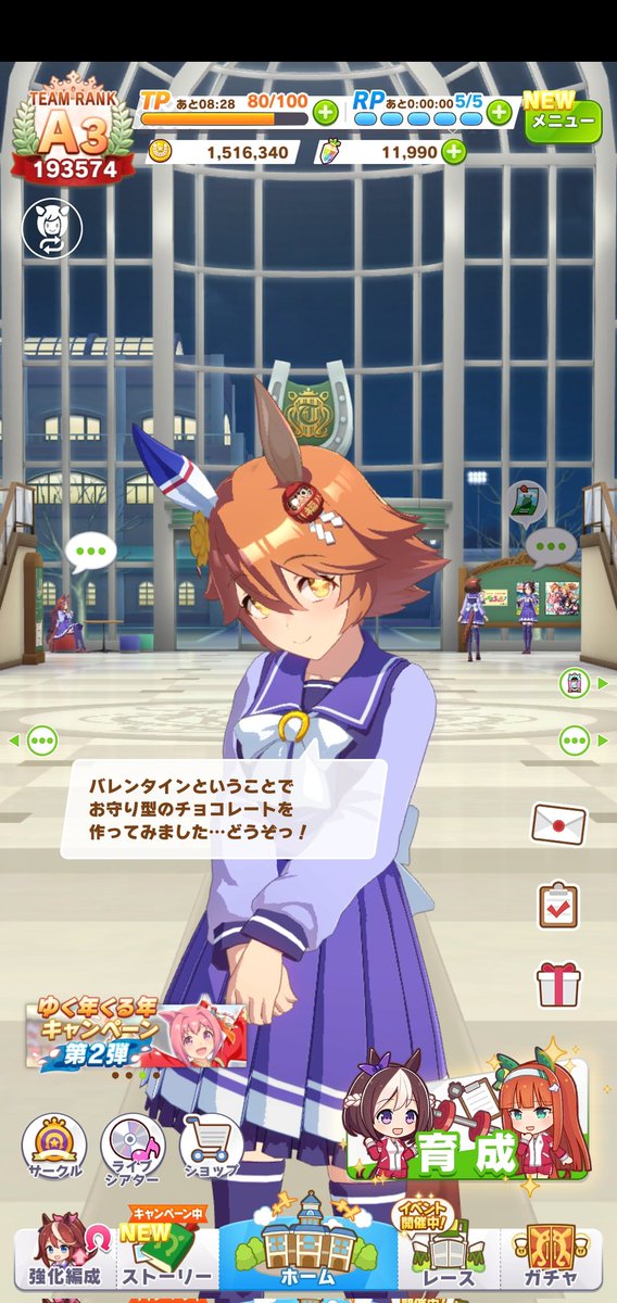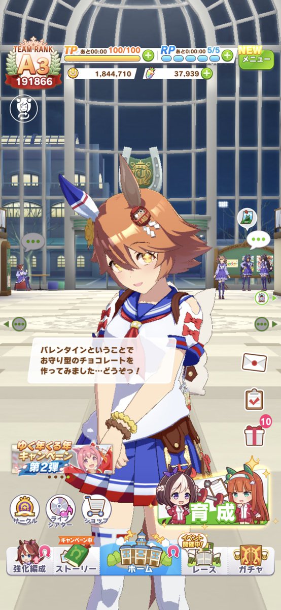 あと珍しくフクキタルがグイグイ来る感じじゃなかったね、でもちゃーんとチョコ作ってくれた方のボイスは女の子!って感じのボイスで良かったですね……