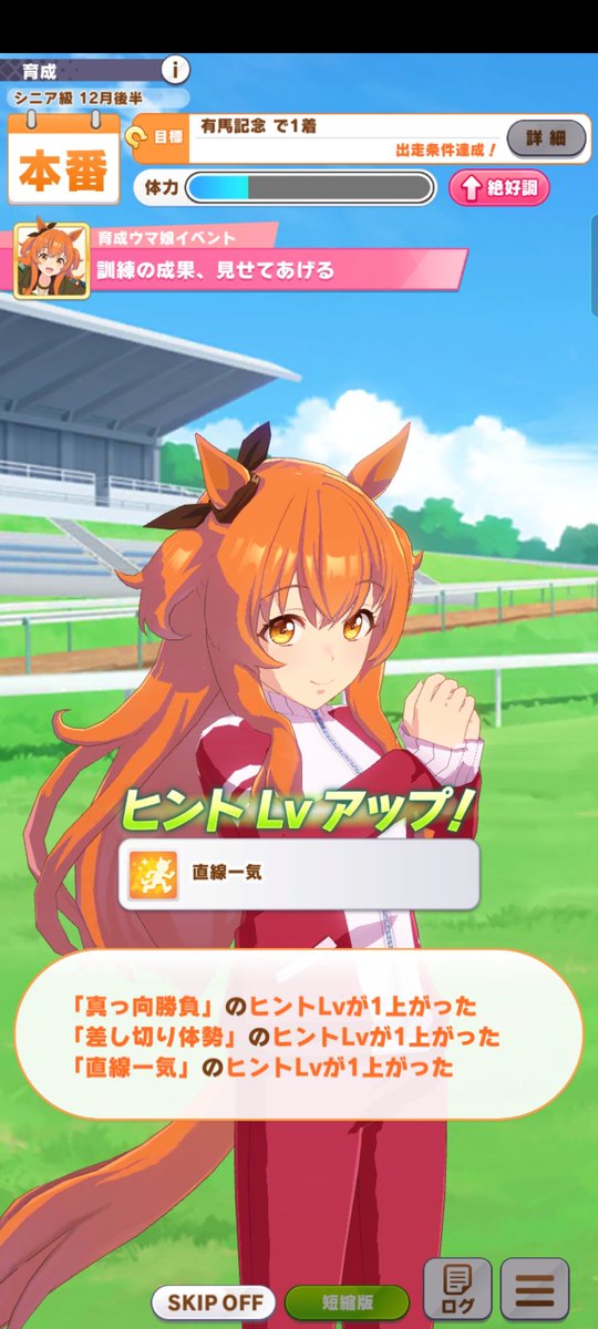 通常マヤちん、URAシナリオでも変幻自在イベント発生確認!シニアの有馬記念後に発生したのでタイミングは固定?(条件はもっと前に満たしてたので…)