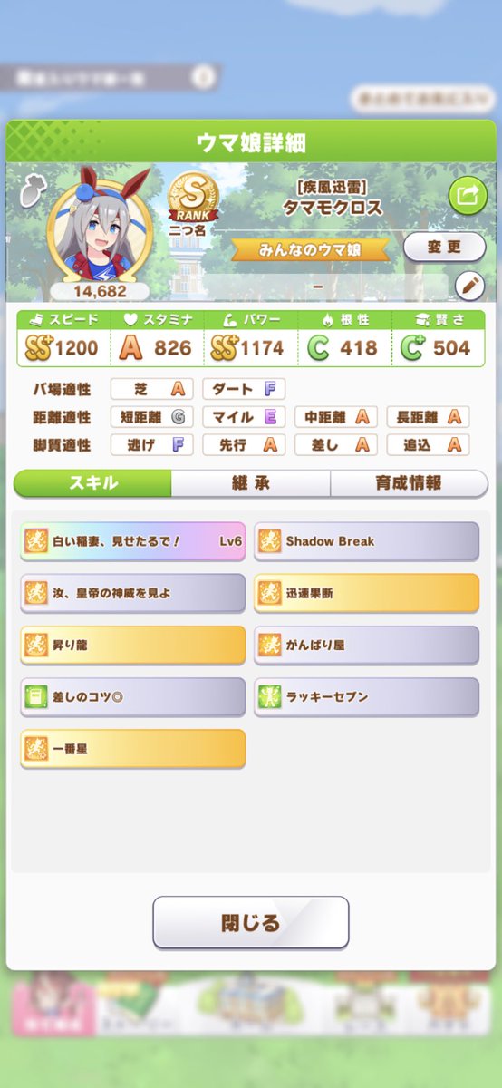 すげえ。SSR賢さウンスはスピボ2だからメッチャ盛れるよな