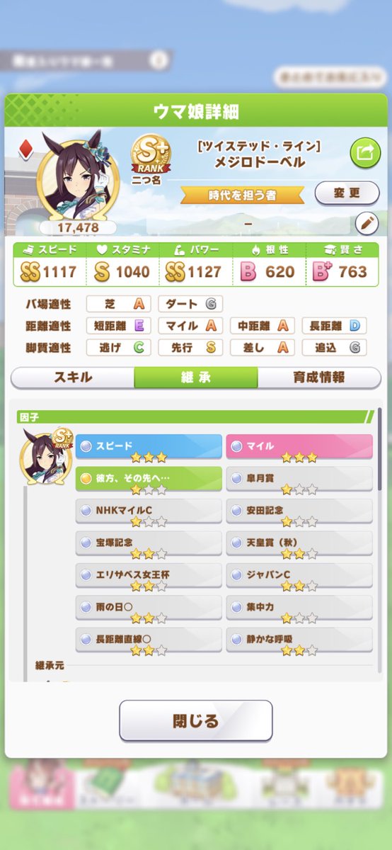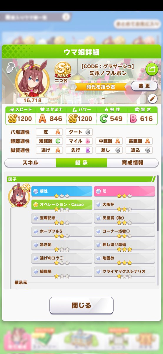 割と新シナリオ慣れて簡単にS+できるようになってきたから強めの因子できて楽しいね