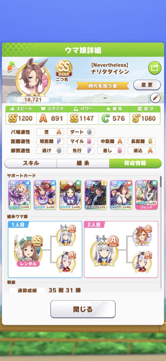 なんだかんだファインちゃんは1年近く強サポの地位を守り続けたね!確かに絆が極端に上がらない時はあるかも!