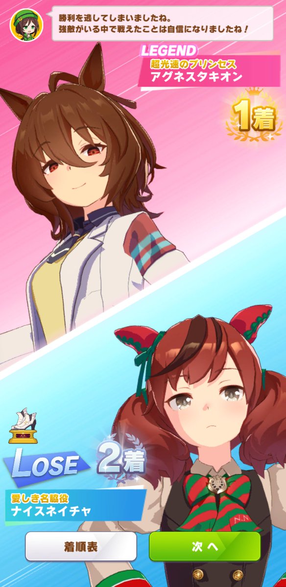今日のレジェは誰で挑戦するかア゛ー タキオンのレジェレ初日寝過ごした…私はモルモット失格…