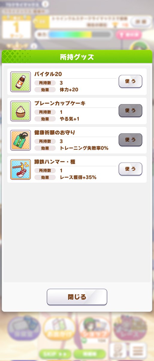 育成でアイテムうまく使えてなさすぎるからもうちょい買うアイテム絞ろう