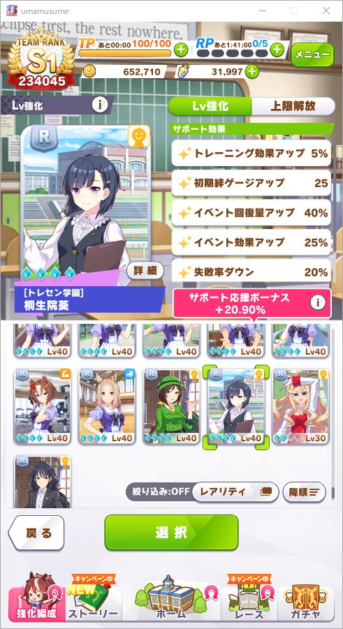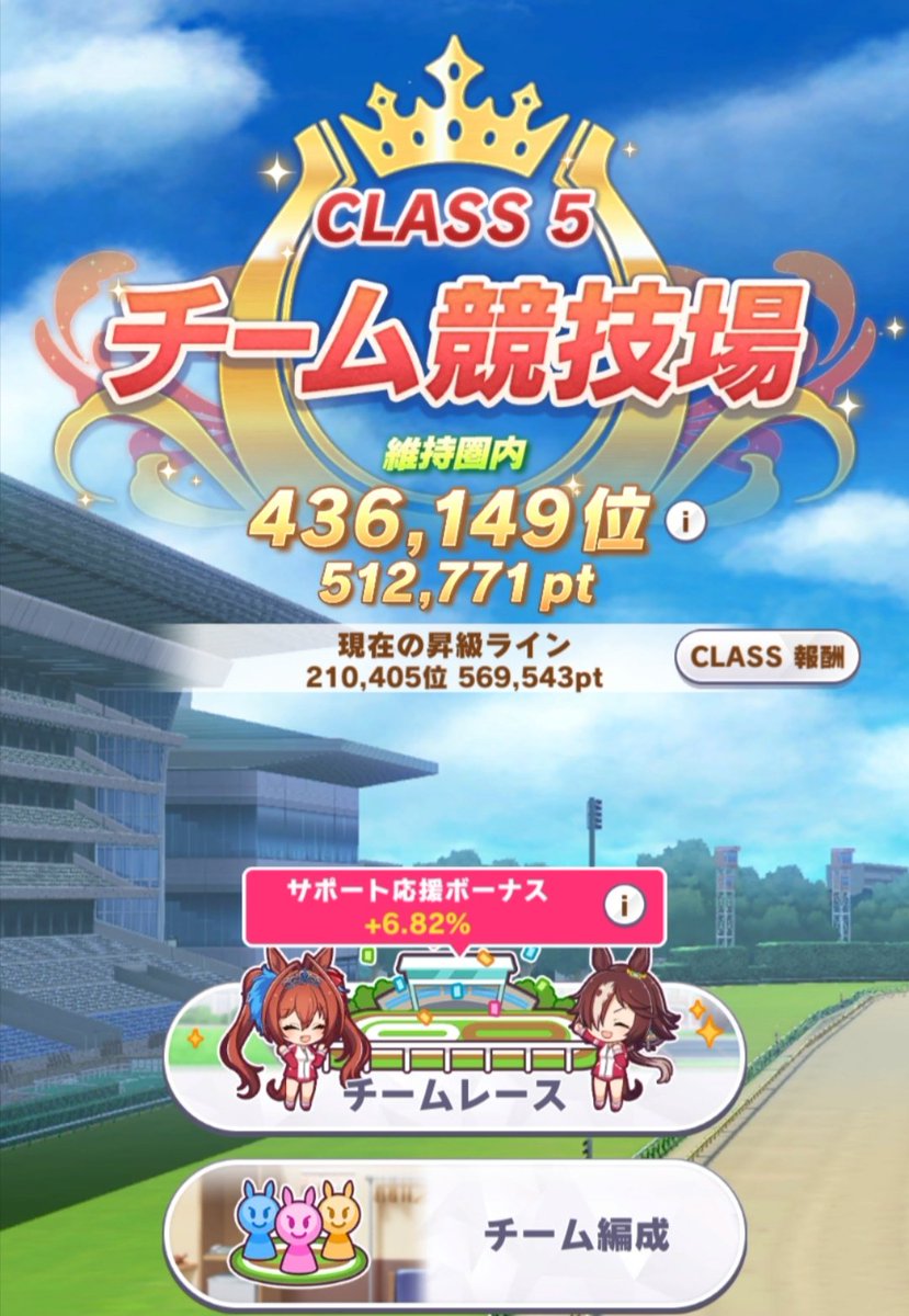 CLASS6の維持ラインがジリジリ上がっているが、サポート応援ボーナスをR含めてコツコツ上げているのでまだ安定的に残れている。