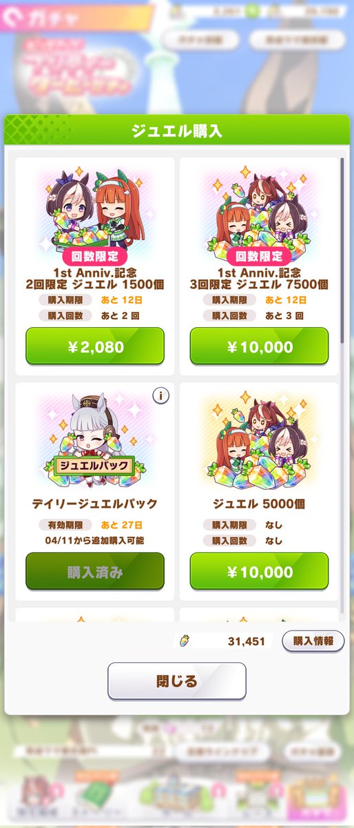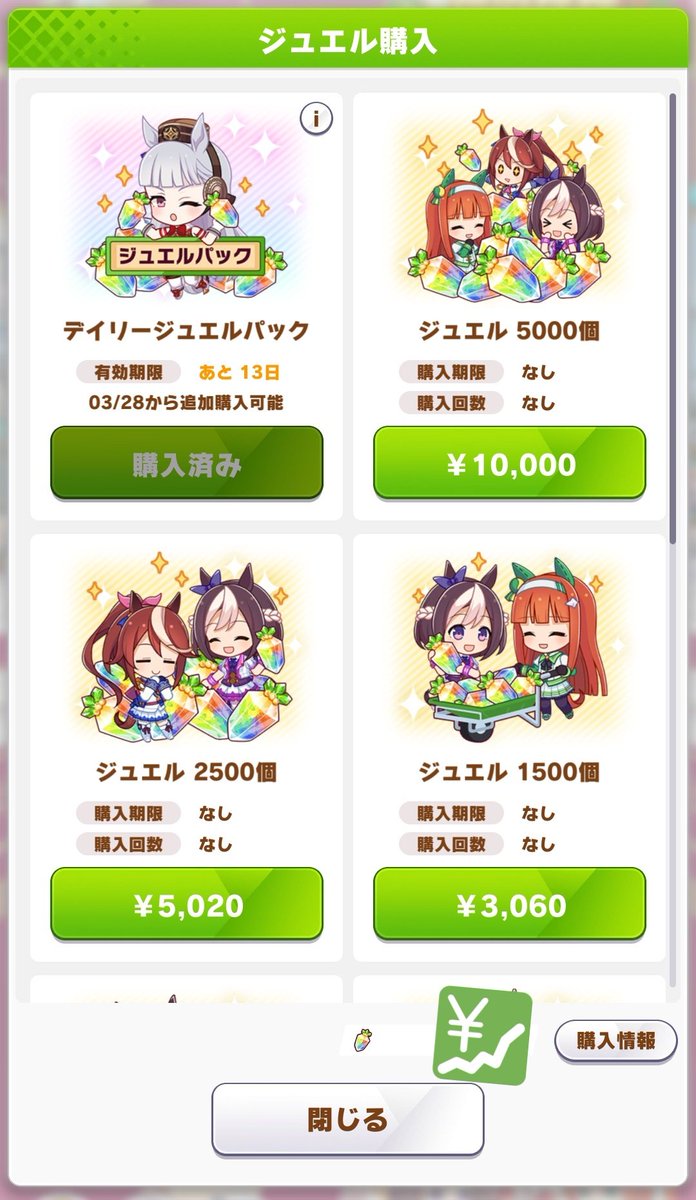 @sul_chan16 今月のお得ジュエルは全部ダイヤちゃんに持っていかれたよ・・・。予定よりも出費少なくなりそうだしお得ジュエルセットに手を出すのもアリだなまあお得ジュエルあるのでなんとか耐えたい、、