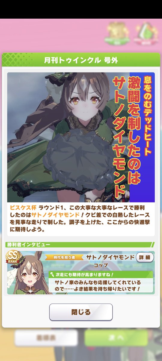 意外とハヤヒデで勝てた、ノンストのおかげかも??そして号外が暴くダイヤちゃんの袖の内側⊙.☉ pic.twitter.com/nqSuaoZnGw