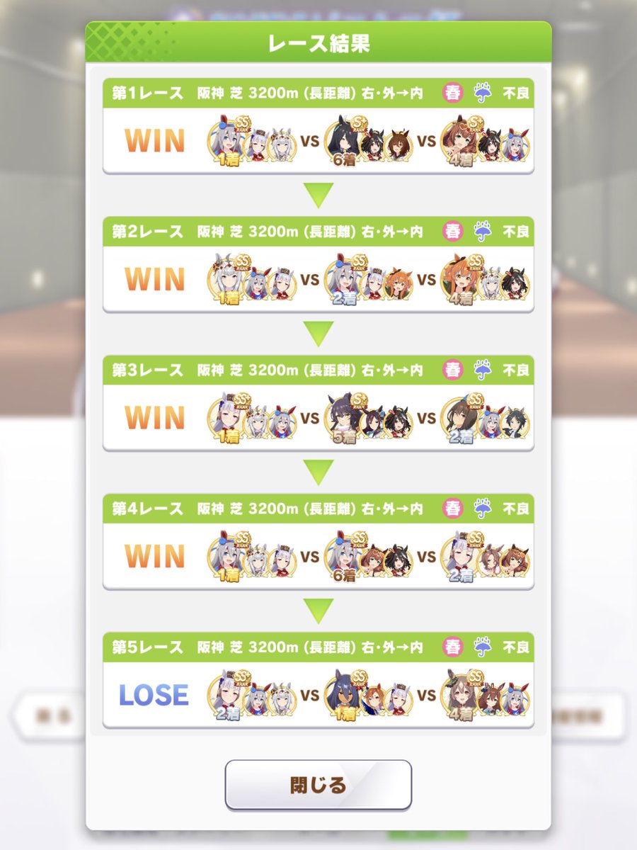 SSしかおらんねんけど315: 名無しのトレーナー 2022/03/24(木) 12:35:29.35 ID:mhsOkFkV0初回3勝2敗だったわ