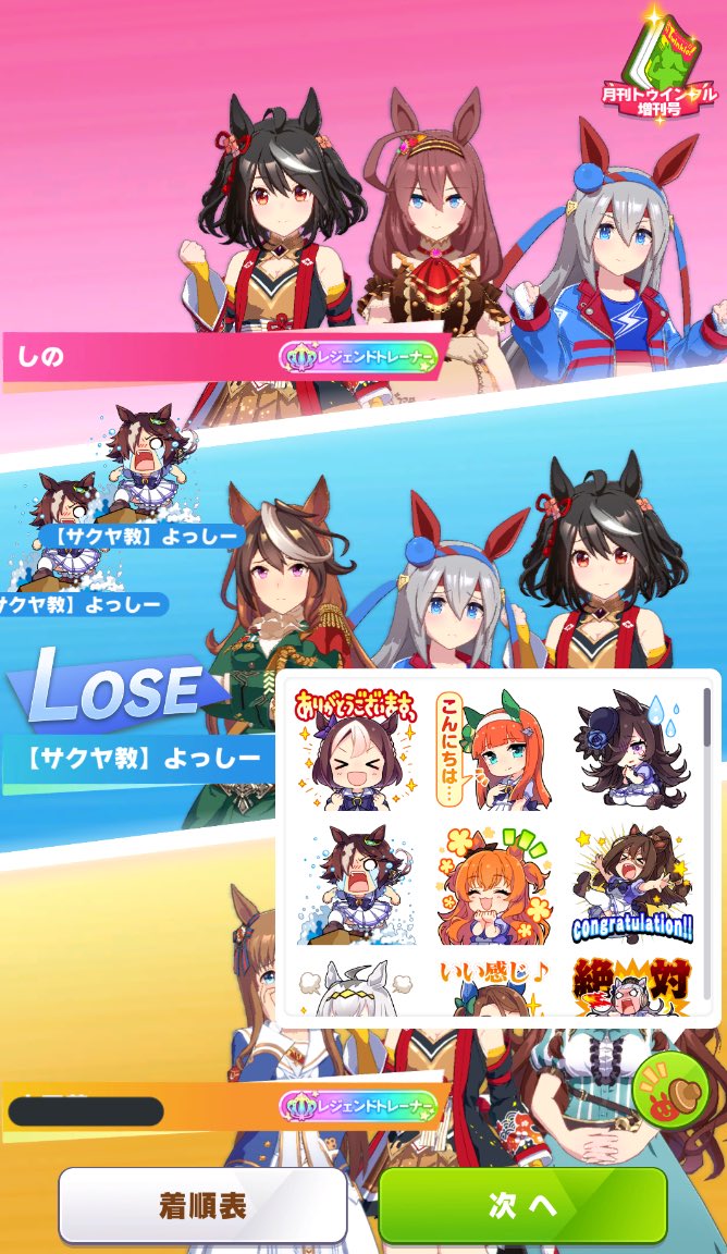 こっちが勝った時にウオッカやライスのスタンプ単発で押されたことはあるな