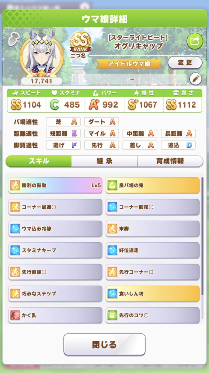 @Naoto_713 |名ω無)序盤は賢さのトレレベルを優先して上げないと終盤に響きますからね…怠るとAにすら到達出来ませんから。おまもり→全てに優先序盤→絆上げるために体力回復・BBQ優先、G1近くなったら蹄鉄も買っとく。