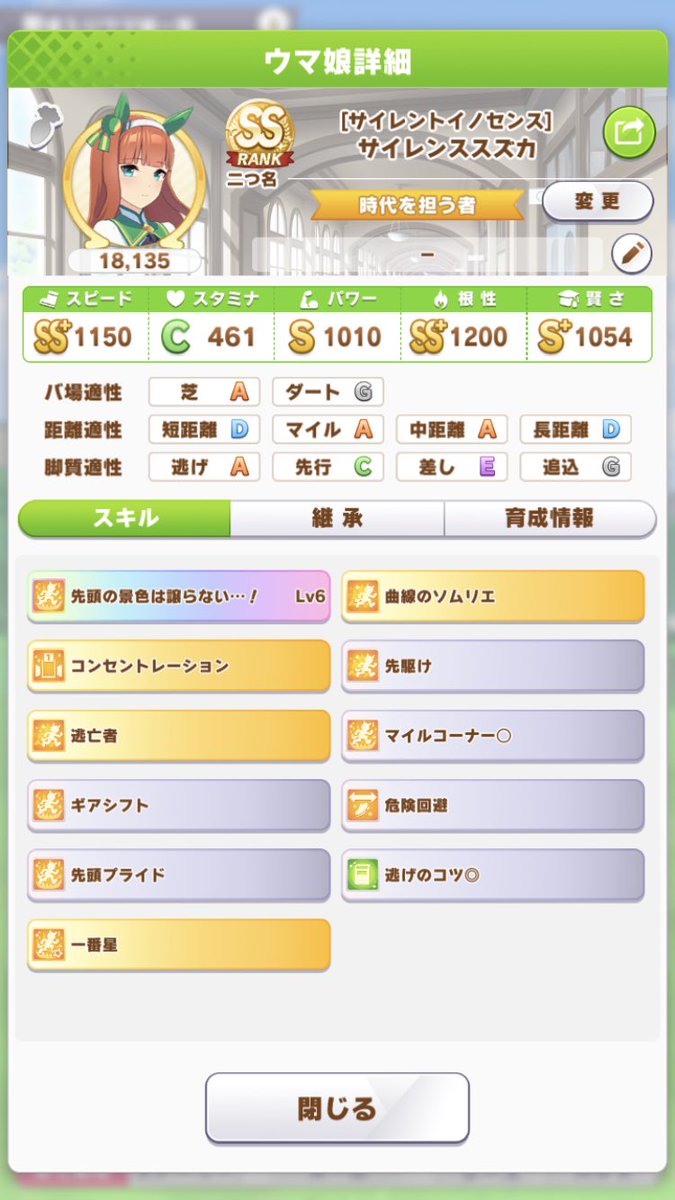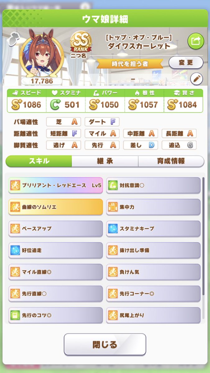 @piyoOii5 スピードはしっかり伸ばせているので序盤から賢さを意識的に踏んで行けるといいかもです。スピードと賢さ以外の練習はほとんど踏まないぐらいでいいと思います絆上げはファインモーション優先で
