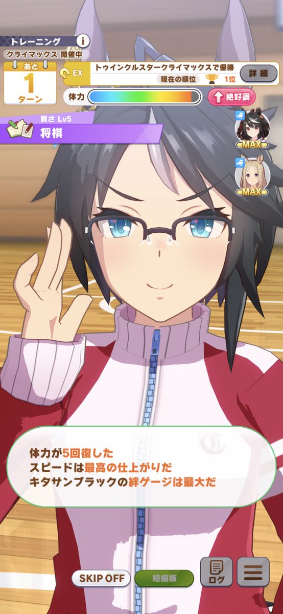 @K8QIaoKVksGmQ5D 最近主流なのは、クライマックスシナリオで根性4、賢さ2の編成ですねー