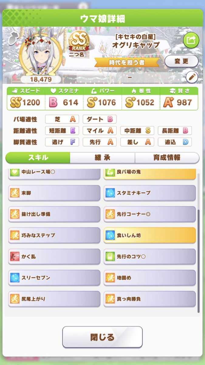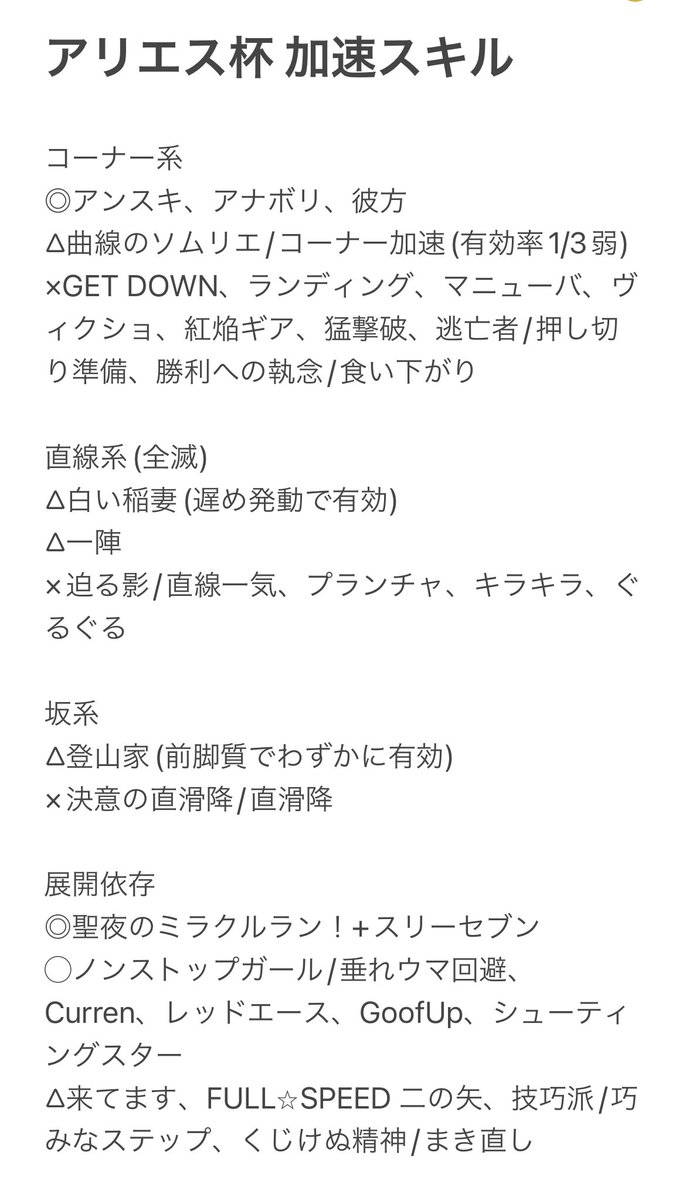 まだまだ育成し直しだ pic.twitter.com/M5vYJRZrK9アリエス杯(皐月賞) 加速スキルまとめ?クリスマスオグリが超強いです。