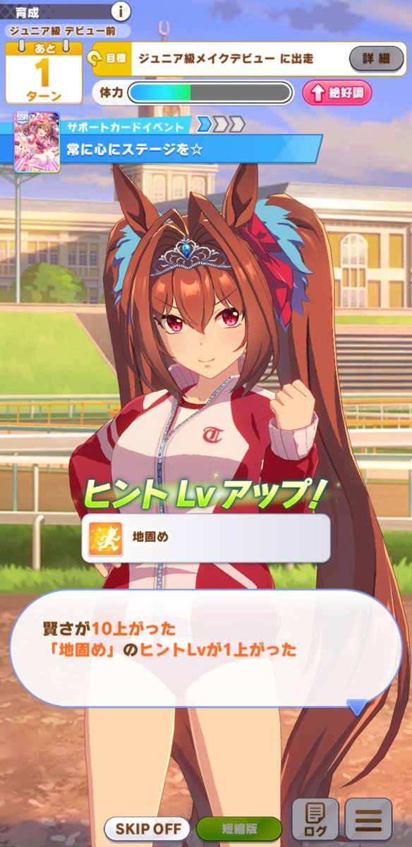前に先手必勝が優秀だから無理して付ける必要もなくなったという意見もありましたね~。あとエアグルーヴちゃんのサポカを入れて根性育成すると結構な頻度で地固めを貰えている気がする!
