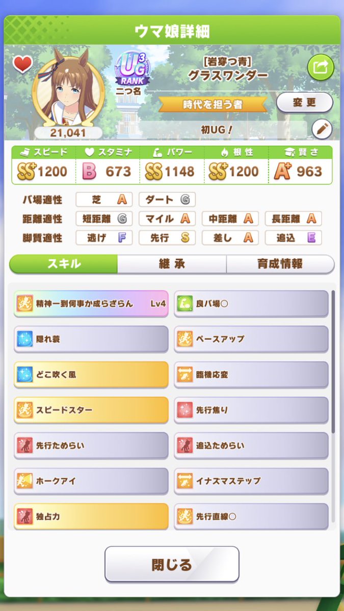 道中ダブルタッグあってもレース叩かないとスキルpt差が最低200は付くなぁ…なお青汁1のみ。結局普段通りな育成になった… pic.twitter.com/DDNS5W3mEyクリオグリの40戦ローテ慣れてきた