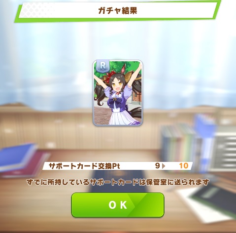それとは別ですり抜けで賢さタイシン当たったっス名無しのトレーナーサポカが虹無しだったのでキャラで虹が出るはずっス!名無しのトレーナーSRは新スイープとウインディちゃん(完凸済み)だったのだ名無しのトレーナーRとSRが出たッス名無しのトレーナーSRカフェが完凸できたから長距離チャンミが待ち遠しいのだ名無しのトレーナーSRアヤベが出たからありがたいっス名無しのトレーナーパールさん来たっス