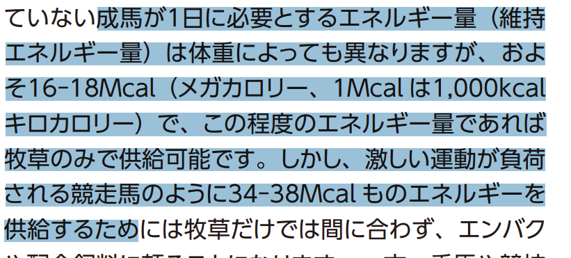 ふと思い立って調べたら競走馬の消費カロリーは一日平均25000