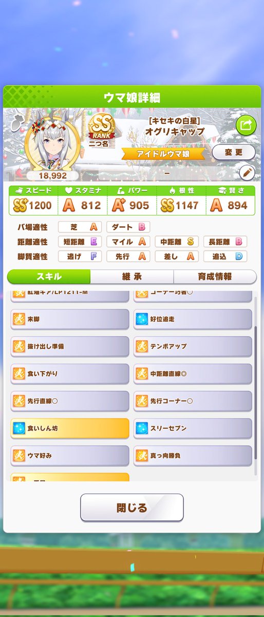 あとは合宿に掛ける。ゴルシあたりでやればSSくらいは余裕だと思う。