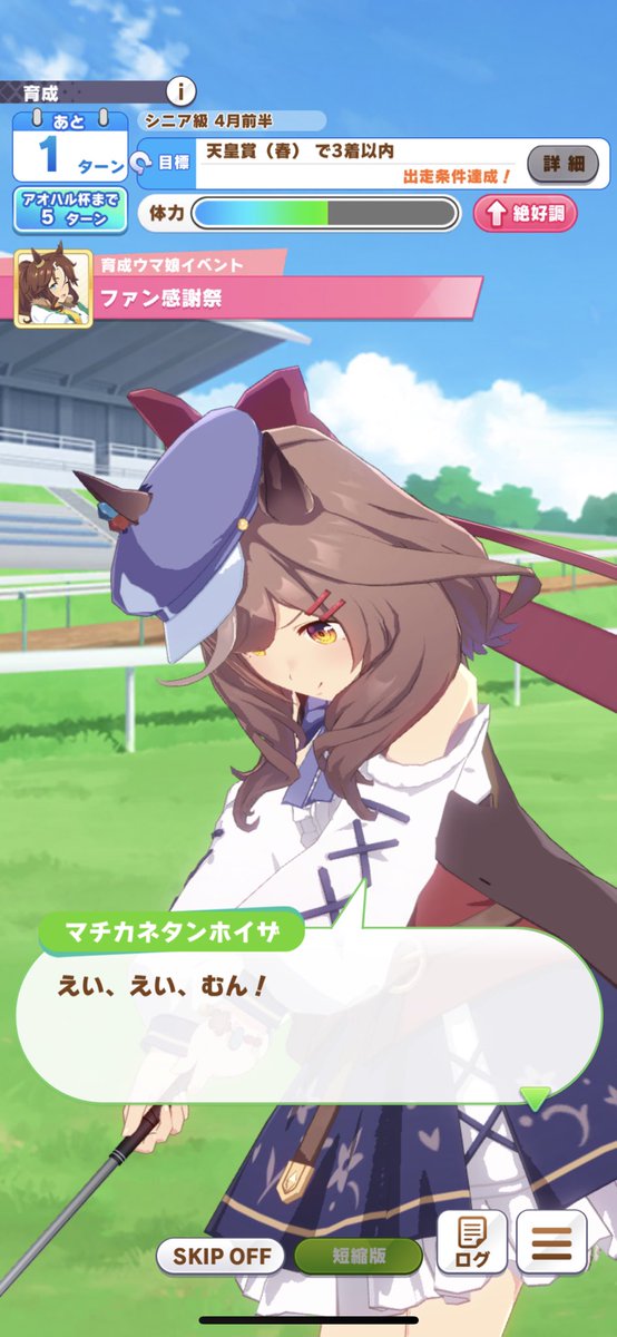 ウマ娘の森じゃなくてもチームルームとかあったらいいのに784: 名無しのトレーナー 2022/05/20(金) 19:16:32.32 ID:7ptfl2QK0ウマ娘がゴルフしたらアルバトロス連発しそう86: 名無しのトレーナー 2022/05/20(金) 19:48:54.14 ID:fCp2jn4B0マチタンがゴルフしてたらしいしそのうちウマ娘ゴルフシナリオ来るぞ