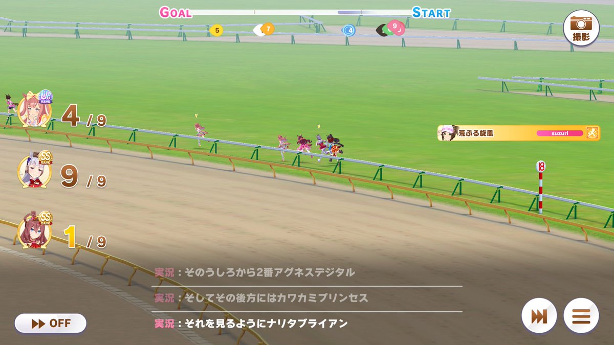 アグネスデジタルの勝ちパターンはこれ。ウママニアか十万バリキが出ると結構この位置にくるのであとはギアで差しておわり。終盤開始地点でこの差だと余裕で届くなー。バレボンが弱いんだよな pic.twitter.com/LPJ6M2cb3d