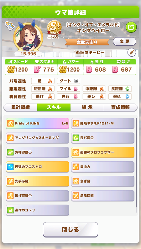 キングの固有スキルは掛かりさえしなければ発動するから脚質どれ選んでも問題ない