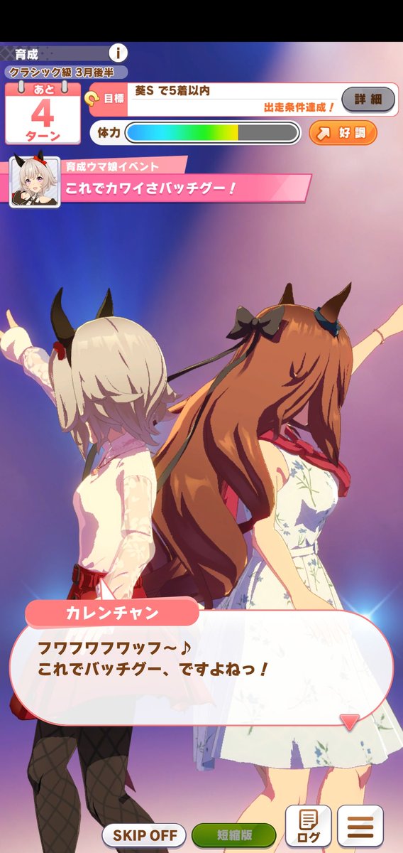 カレンチャン育ててたらマルゼンスキーとディスコで踊るイベント来て悪夢で調子下がるのかと思ってしまいすみませんでしたマルゼンスキーの謎ダンスで俺もカレンチャンみたいに困惑してたいねカレンチャンの育成でマルゼンスキーさんが謎空間でダンスしてませんでしたっけ?