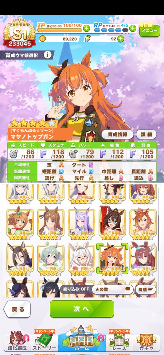次のキャンサー杯は大井の帝王賞か?って言われてるけど、正直キツいよね。そもそもダート中距離適正のウマ娘が少ないし、距離と馬場の2つの赤因子揃えるのがしんどい。