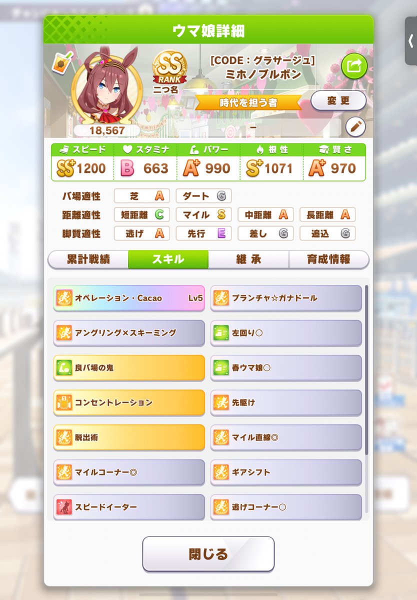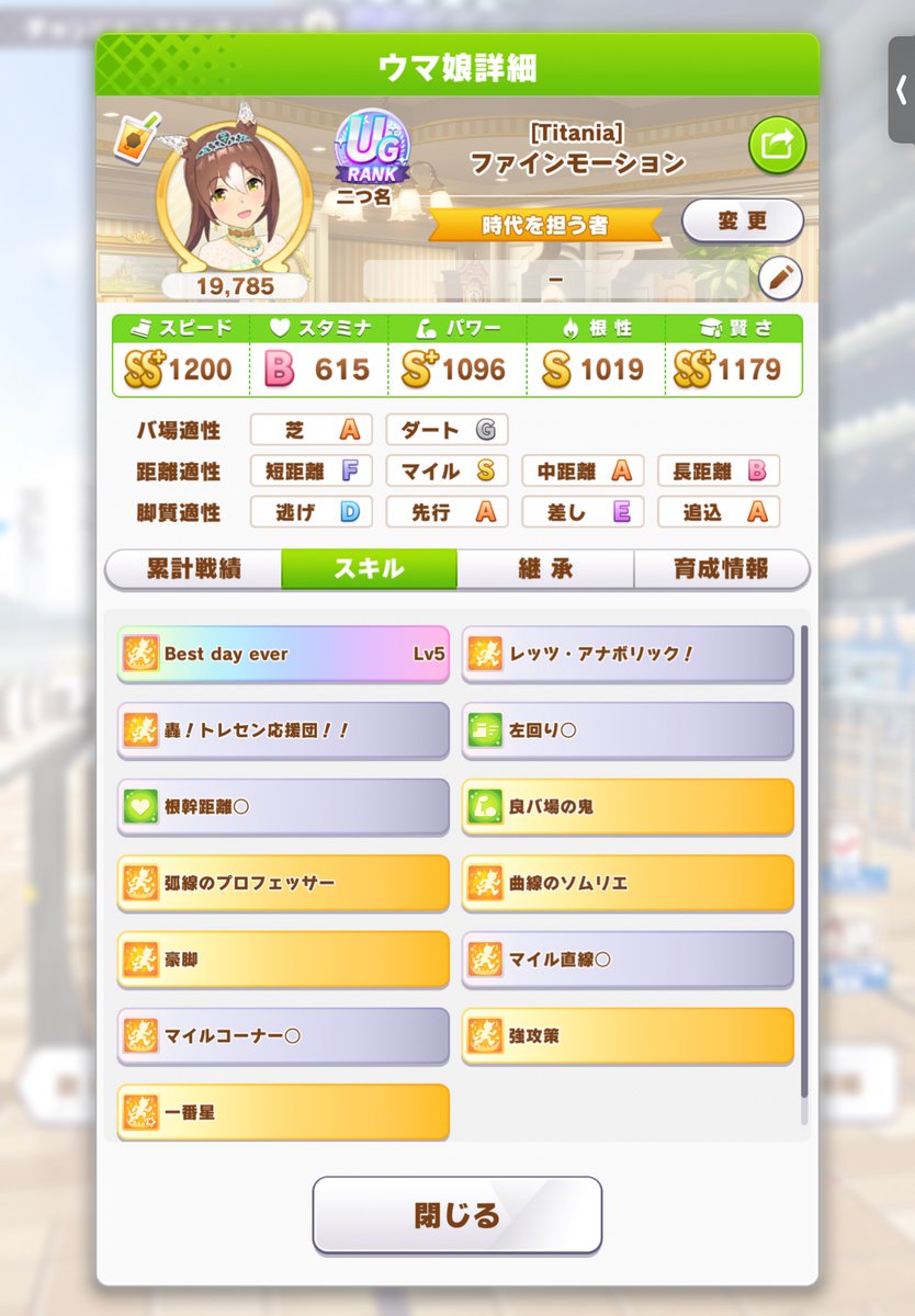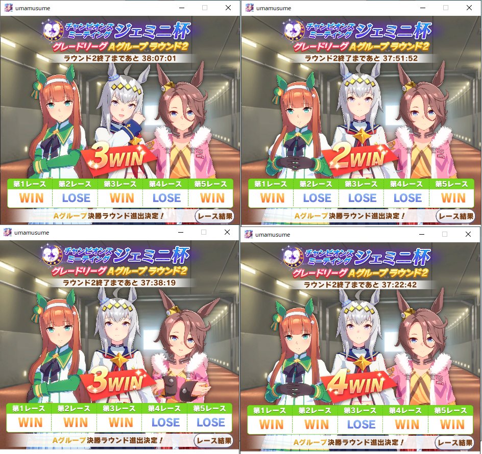 スズカでハナを取り続けるのがほんときついが、取りさえすればだいたい勝てる。 pic.twitter.com/yBRS5DNW5Tウマ娘ジェミニ杯2。個人的に強いと思っているのに使われていないキャラはセイウンスカイとエルコンドルパサー。特にエルコンは数少ない先行で勝てるウマ娘なのに全然使われてないのが本当にもったいない。ジェミニ杯1ラウンドは、勝率75%。直線一気なしUGとありSSファインで悩んでるけどUGかな。にしてもちゃんと推しの殿下を好きだからだけではなく、強いウマ娘として出せるのが嬉しい pic.twitter.com/rXj3wFpwIa