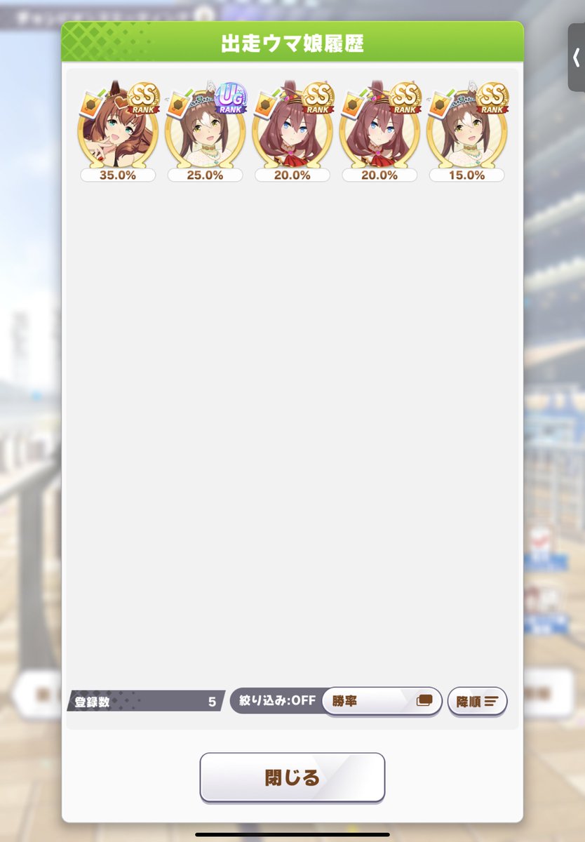 私の場合だとタイシンちゃんでしょうか。やっぱりこの子が今のところは一番勝率が高め。いつもありがとう!