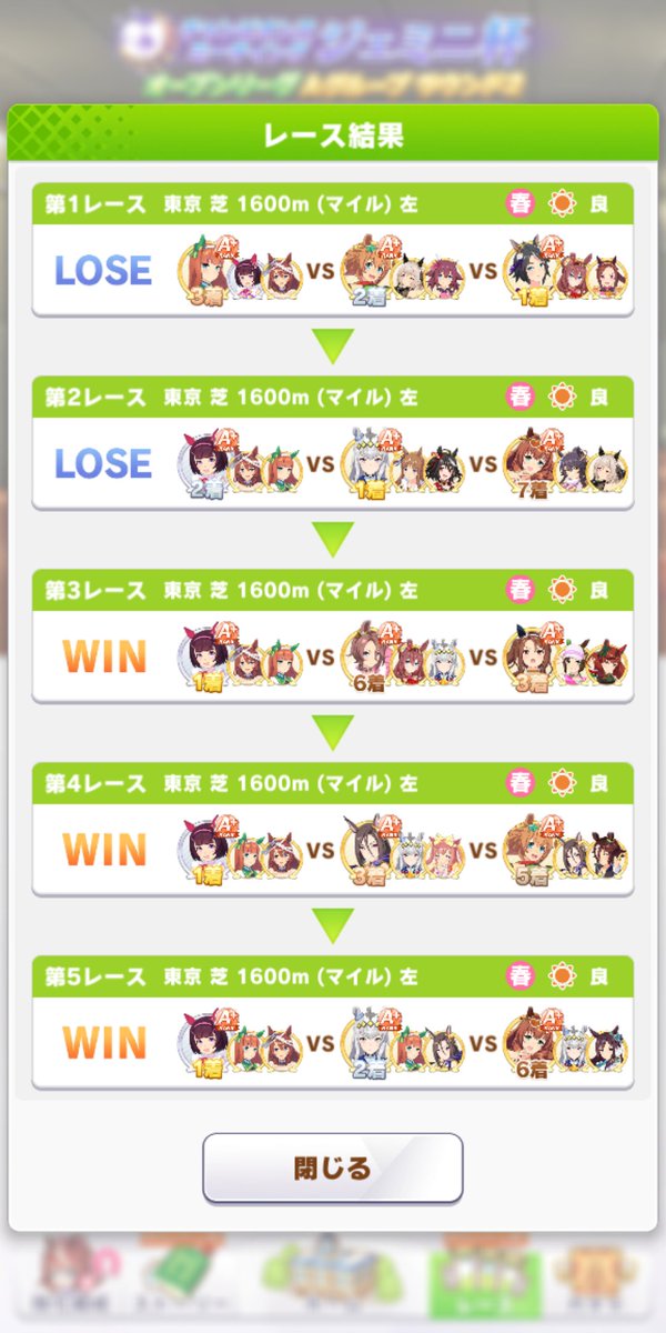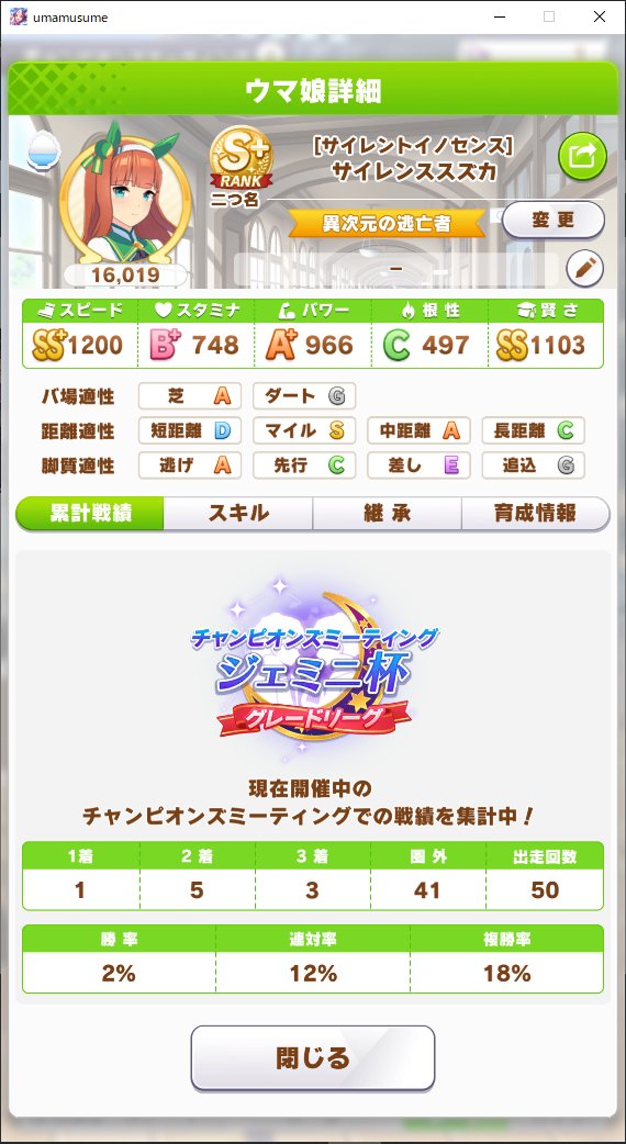 私は大逃げとマッチングしていないですね~。今回、大逃げを出したよ!というトレーナーは多いのかな?