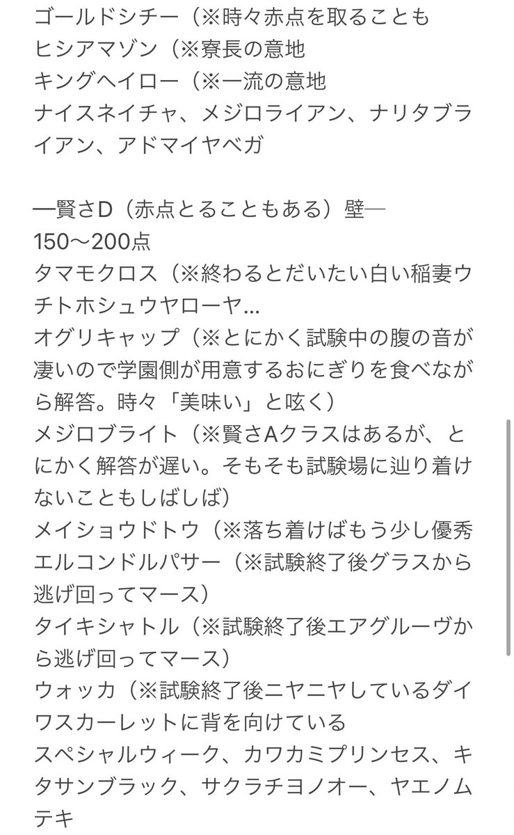 #ウマ娘 pic.twitter.com/BK0MNttYrPウマ娘の賢さパラメータって知識とか学力ではなく、『レース経験』とか『レース勘』みたいなものだろうなと思っている今流行りのウマ娘達って文武両道だったのか