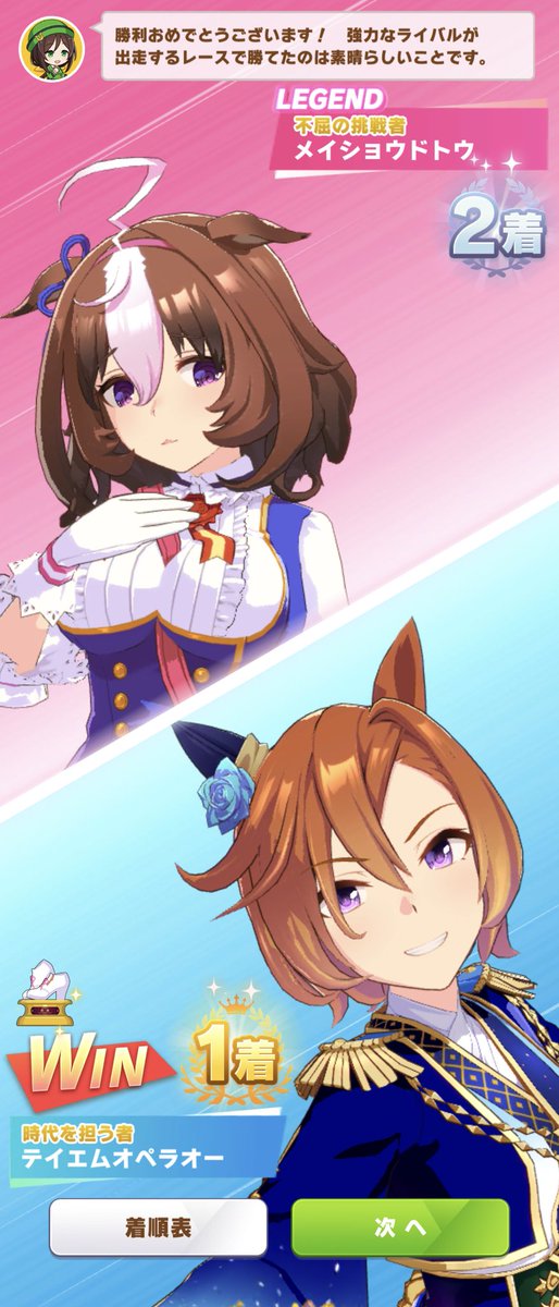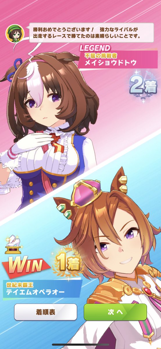 やはりここで出走させたいのはオペさんですよね!ドトウちゃんが出てくるのは分かっていたから、事前に育成しておけばよかった