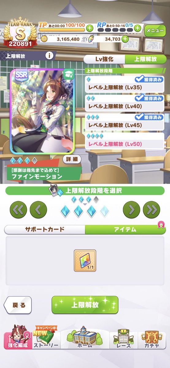 俺のもファイン、キタサン、クリーク、トプロは完凸してるが根性で完凸してるの配布だけだもの