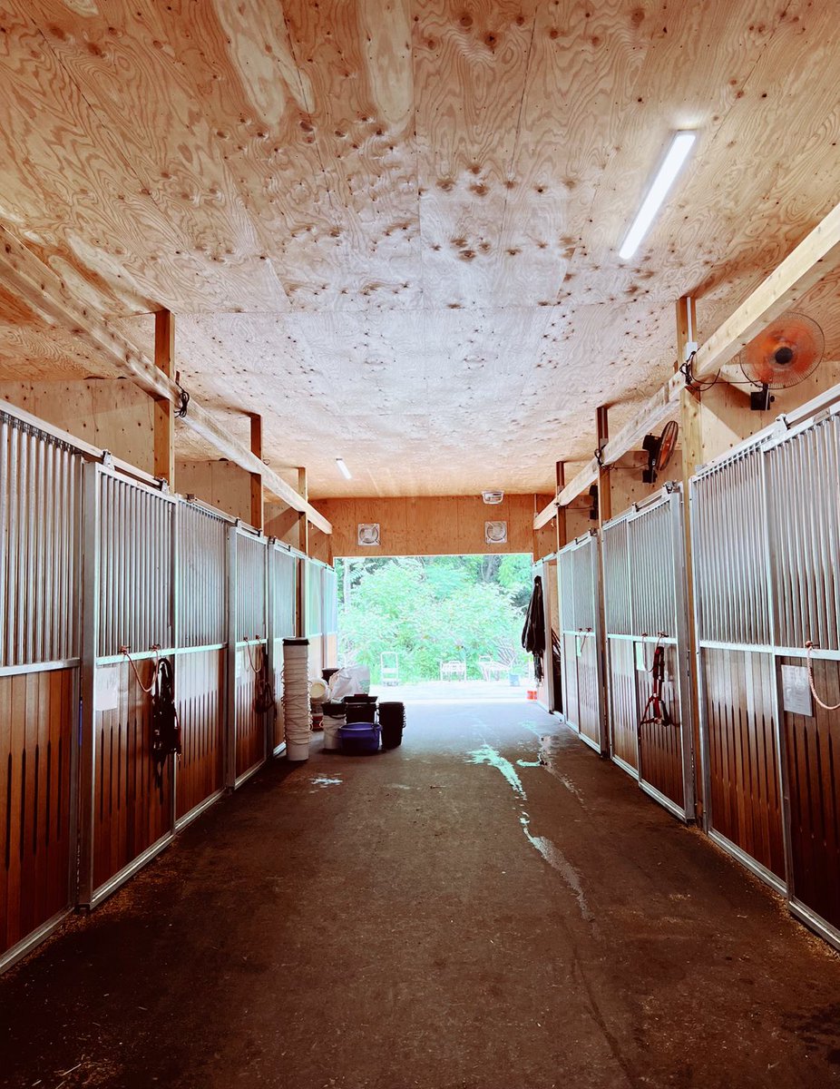 厩舎裏は樹木が茂り、近くにある川から涼しい風も吹いてくるので、自然の力も借りながらハイブリッド空調システムで✌️