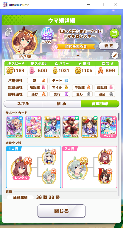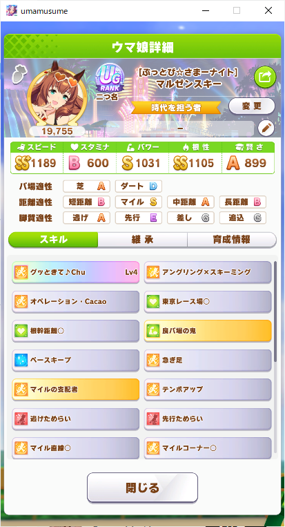マイルのスキルがそこそこあるので、競技場メンバにするかなぁ。 pic.twitter.com/tNnTbNgT4J
