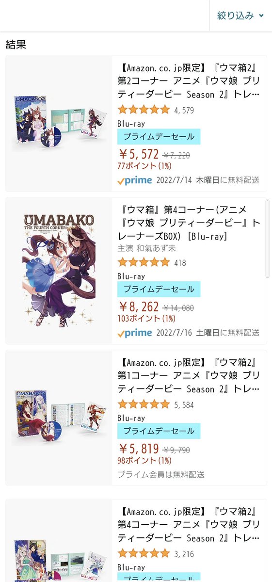 プライムデーでダスカ一式は草ウマ箱はプライムデー対象なんだけど、ウマ娘のライブBlu-rayはプライムデー対象じゃない…ウマ娘2期のBD、2万でコンプできるwwwwプライムデー相変わらずやばいwwww