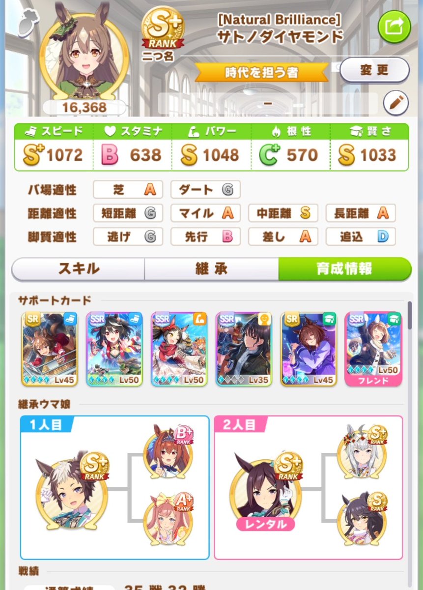 賢さSS乗らなかったから賢9にして、夏合宿にスピードが光ればいけそう。