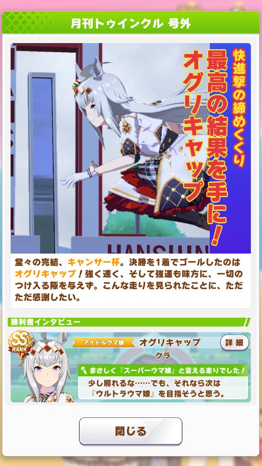 ありがとうベルちゃん575: 名無しのトレーナー 2022/07/19(火) 12:22:00.20 ID:NH8eHjzud勝ってしまった、ありがとうキタちゃん701: 名無しのトレーナー 2022/07/19(火) 12:26:37.23 ID:JgGdvML10ステータス盛れてないけど一番星もたせたギャンブルオグリが初プラチナ取ってきてくれた?