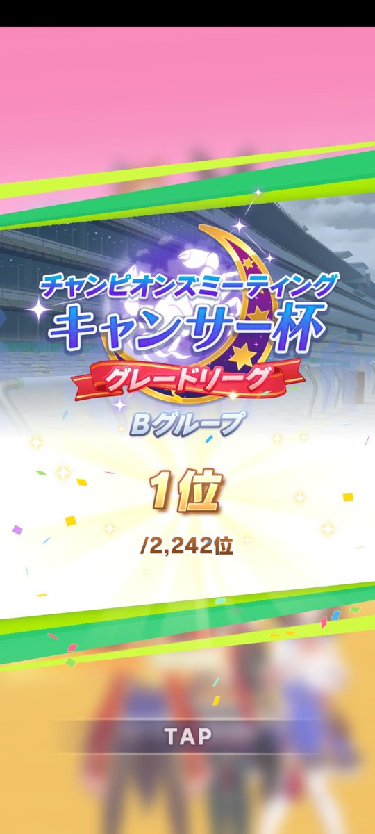 今回の予選の勝率は84%といつもより低めだったけど、決勝はマッチングに恵まれました。 #ウマ娘 pic.twitter.com/irvDuxcs5Aキャンサー杯グレード決勝Bグループ見事に逃げ切り勝ち!!